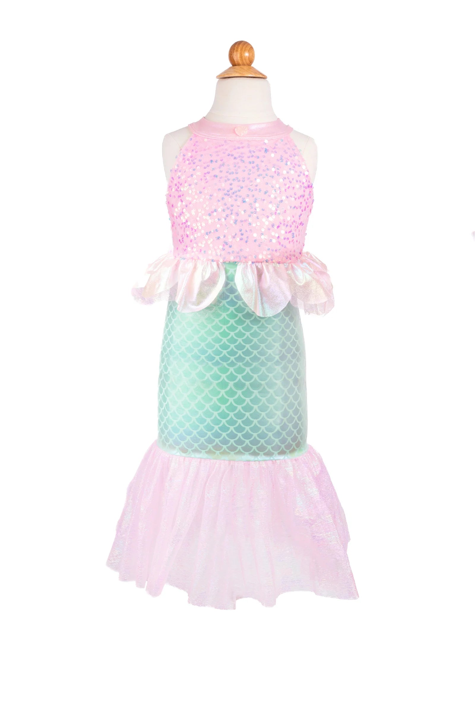 Dive into a world of underwater enchantment with our Misty Mermaid Dress! This mesmerizing ensemble is crafted to turn every little one into a sea princess. The pink high-neck top, adorned with beautiful iridescent sequins, adds a touch of magic that sparkles with every movement.