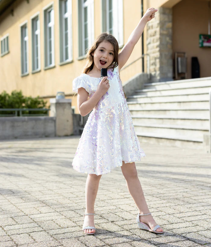 Let your little one shine from the inside out in the A Star is Born Sequins Dress – a magical mix of sparkle, softness, and starry charm. This show-stopping dress features a vibrant sequin bodice in a stunning blend of pink, blue, gold, and silver that glimmers with every move, perfect for shining on stage or lighting up the room at any celebration.